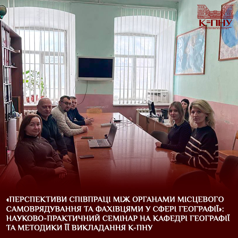 На базі кафедри географії та методики її викладання Кам’янець-Подільського національного університету імені Івана Огієнка відбувся науково-практичний семінар з теми «Перспективи співпраці між органами місцевого самоврядування та фахівцями у сфері географії».