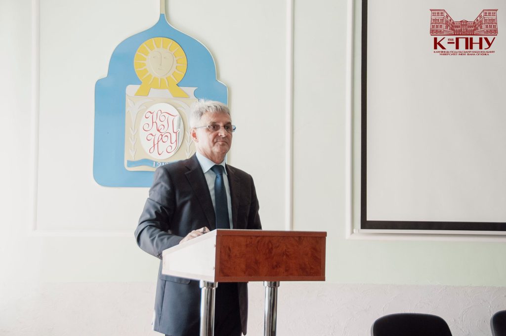 Голова профспілкового комітету працівників університету, директор навчально-наукового інституту української філології та журналістики, доктор філологічних наук, професор Борис Коваленко проаналізував виклики та перспективи розвитку Кам’янець-Подільського національного університету імені Івана Огієнка, наголосив на важливості збереження високого рівня освіти в сучасних умовах і забезпечення конкурентоспроможності випускників на українському та міжнародному ринках праці.