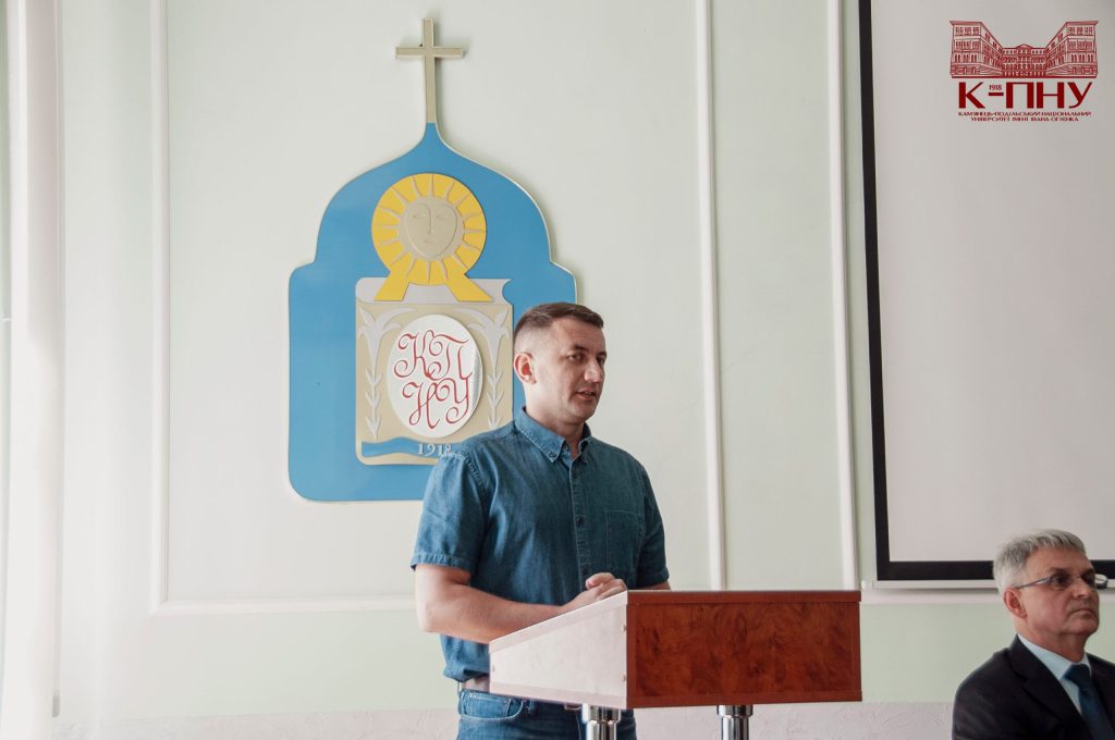 Голова профспілкового комітету працівників університету, директор навчально-наукового інституту української філології та журналістики, доктор філологічних наук, професор Борис Коваленко проаналізував виклики та перспективи розвитку Кам’янець-Подільського національного університету імені Івана Огієнка, наголосив на важливості збереження високого рівня освіти в сучасних умовах і забезпечення конкурентоспроможності випускників на українському та міжнародному ринках праці.